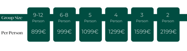 Prices are given for double or triple rooms. Single room option is additional 70€ /night.