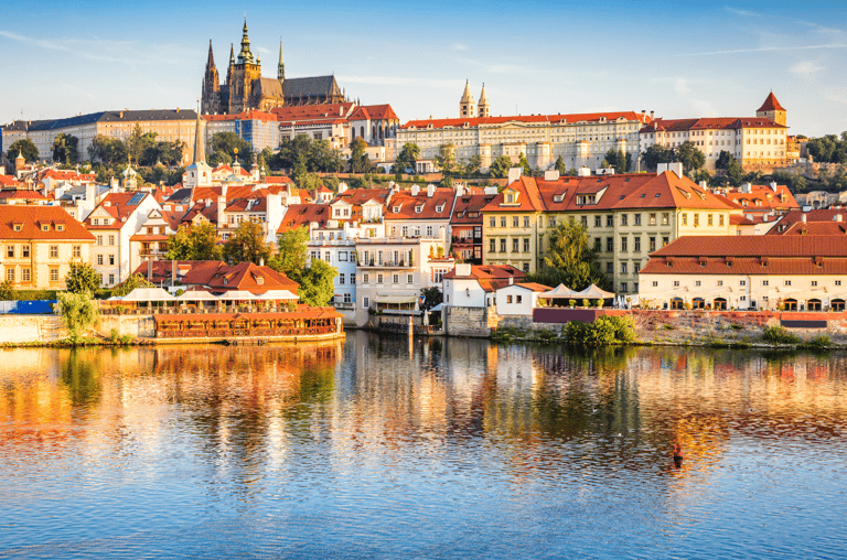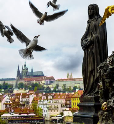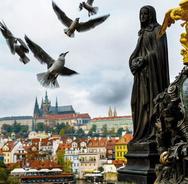 At the end of your walk, the Prague Castle complex welcomes you with grandeur. Spanning over 70,000 square meters, it's the largest ancient castle in the world and home to Czech presidents, once kings and emperors. Explore the towering St. Vitus Cathedral with its stained-glass windows, Gothic architecture, and tombs of Czech royalty. Step into the Old Royal Palace and imagine royal coronations, or wander down Golden Lane, where tiny houses once sheltered alchemists and castle guards.