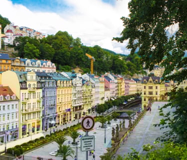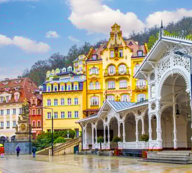 Elegant and healing, Karlovy Vary has welcomed travelers for centuries with its thermal springs and spa tradition. Sip mineral water from porcelain cups, admire the colonnades, and explore the town's connection to famous visitors from Goethe to film stars. A place for restoration — of the body and spirit.