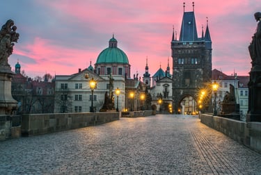 Depending on arrival time, enjoy a welcome drink featuring Bohemian sparkling wine. Optional dinner with traditional Czech cuisine such as goulash, roast duck, or svíčková. Evening orientation drive through illuminated Prague, passing Wenceslas Square, the Dancing House, and the National Theatre along the Vltava River.